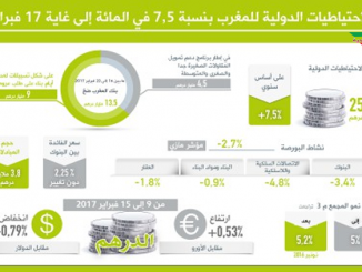 ارتفاع الاحتياطيات الدولية للمغرب بنسبة 7,5 في المائة إلى غاية 17 فبراير 2017 (بنك المغرب)