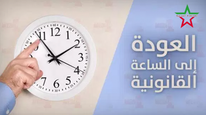 – أعلنت وزارة إصلاح الإدارة والوظيفة العمومية أنه ستتم العودة إلى الساعة القانونية للمملكة، وذلك بتأخير الساعة بستين دقيقة، عند حلول الساعة الثالثة صباحا من يوم غد الأحد 29 أكتوبر 2017.