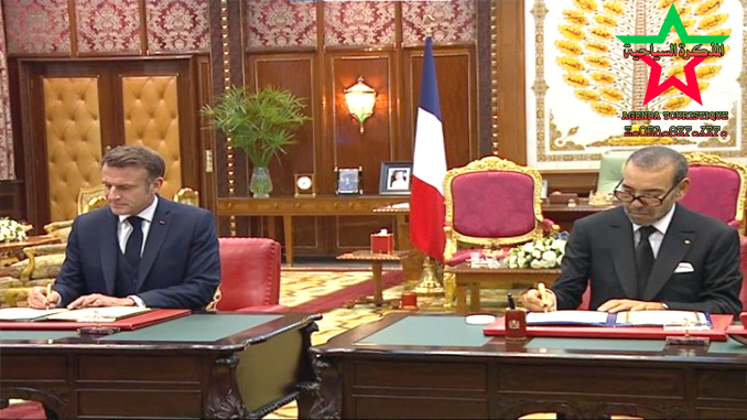 ” 1. – قرر صاحب الجلالة محمد السادس، ملك المغرب، والسيد إيمانويل ماكرون، رئيس الجمهورية الفرنسية، بمناسبة زيارة الدولة التي يقوم بها هذا الأخير إلى المملكة المغربية، خلال الفترة من 28 إلى 30 أكتوبر 2024، أن يدشنا مرحلة جديدة من التاريخ الطويل المشترك بين فرنسا والمغرب من خلال الارتقاء بالعلاقة بين البلدين إلى مستوى “شراكة استثنائية وطيدة”.